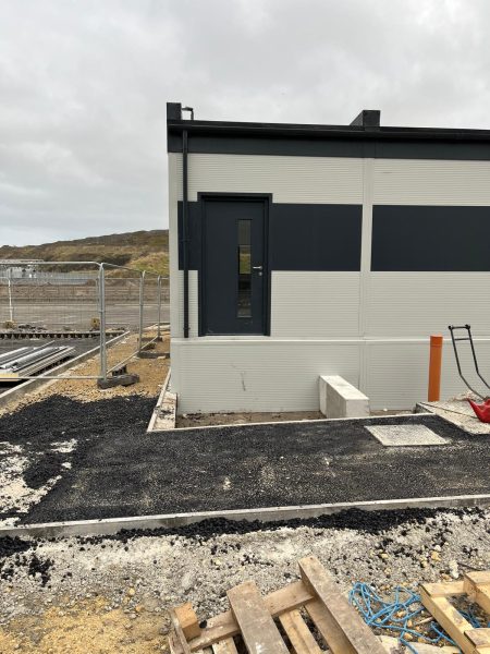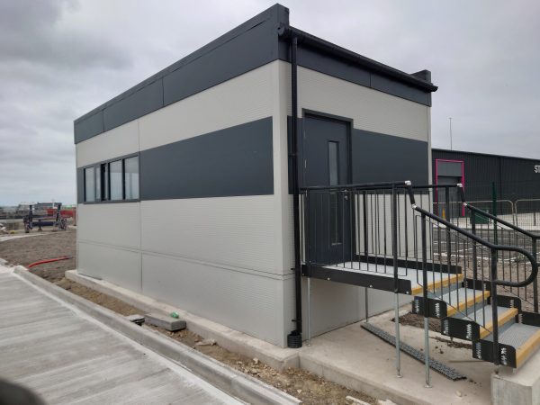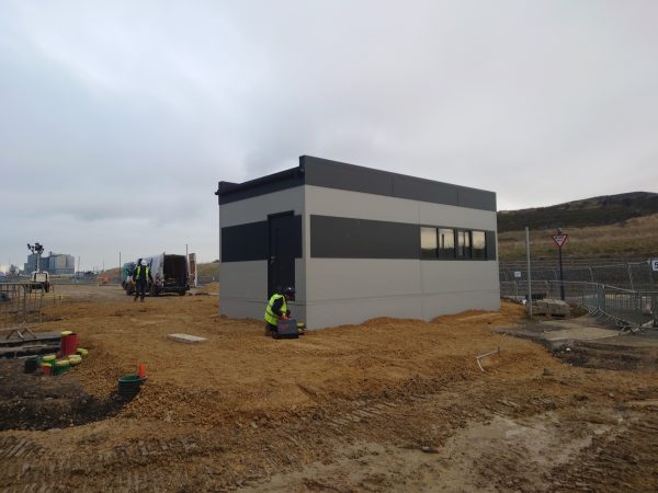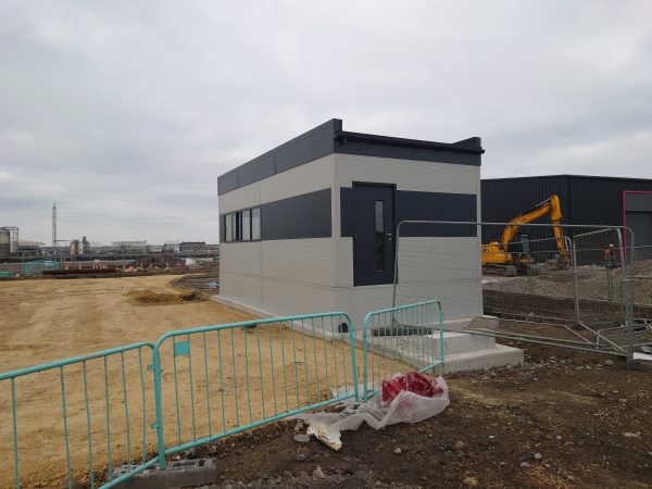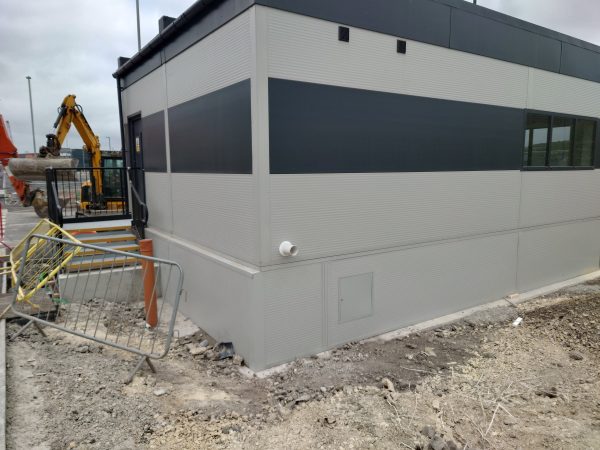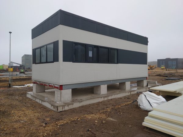 Commissioned by a Tier one contractor to design and manufacturer 3 no gatehouse & supplier a stores jack leg cabin. The units had Isoclad PIR Micro rib cladding externally, Suspended ceilings, plus skirt around the bottom. Unfortunately, no finished externals as they were delivered long before main building and landscaping were completed.